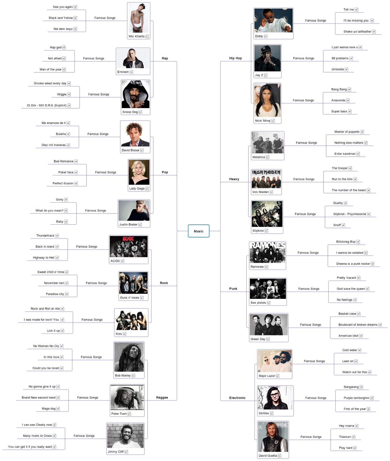 Today I am here because I have done a mindmap about music. Types of music, singers or groups, information about the singers or the groups, the songs...